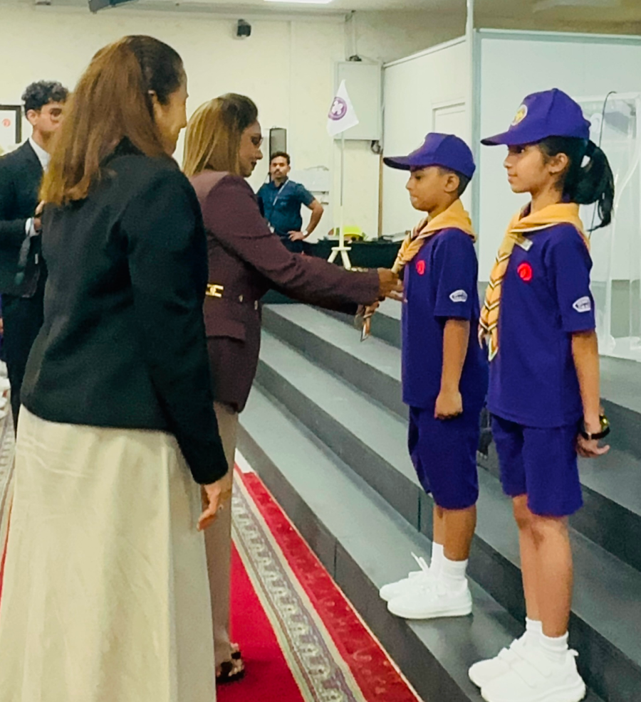 Nisha Shoukath honored as Chief Guest at the Scarfing Ceremony, GEMS Our Own Indian School.